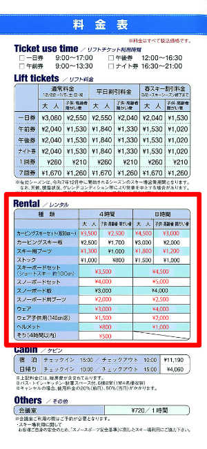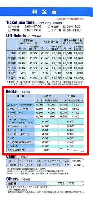 2025〜2026パンフレットの裏面、料金表のレンタル料金に誤りがございました。