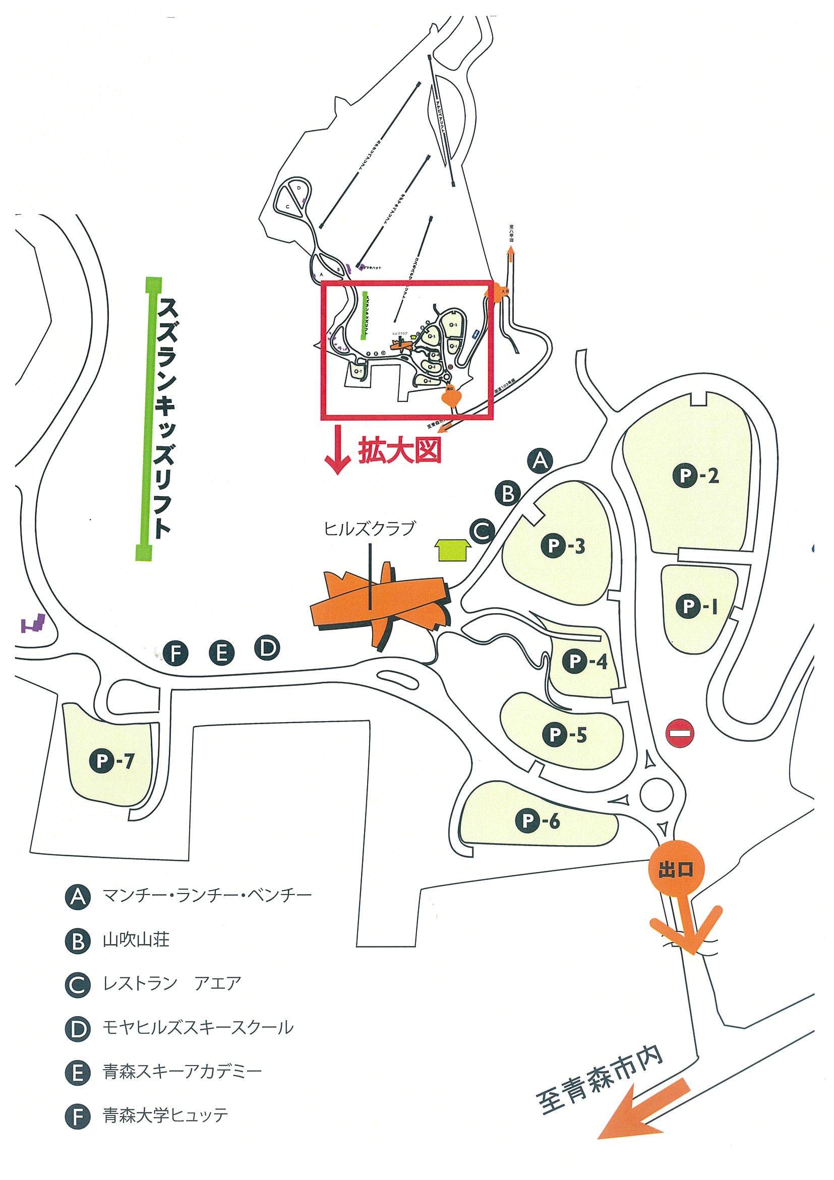 駐車場及び施設位置 駐車場と施設位置のご案内 お車でご来場の方、スキースクールをご利用の方は下図をご覧下さい。当スキー場では一方通行制を採用しております。スキー場ご利用のお客様におかれましては、道路案内板に従ってスキー場入り口からご入場下さいますようお願い申し上げます。 ご注意いただきたいこと 道路への駐車はご遠慮下さい。 お客様同士の車輌の事故に関しましては一切の責任を負うことが出来ませんのでご注意下さい。 盗難、車上荒らし防止のため、施錠をお願い致します。 ライト等の消し忘れが無いか車輌を離れる際はご確認下さい。